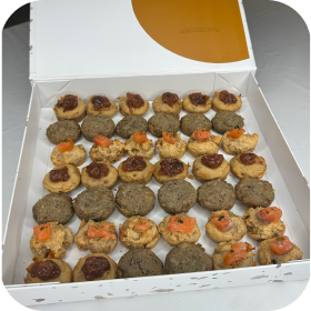 Une création disponible uniquement pour les fêtes, composée de 42 mini cookies (14 de chaque saveur) : • Foie gras & figue • Saumon & aneth • Comté & truffe